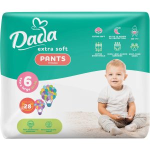 Чому варто вибирати підгузки-трусики Dada Extra Care? Перші підгузки-трусики вашої дитини мають дуже відповідальне завдання: вони повинні бути функціональними, забезпечувати комфорт, безпеку та повноцінний сон. Підгузки-трусики Dada Extra Care завдяки приляганню до тіла і гарантують, що ніщо не обмежує рухів маленького дослідника.